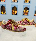 Red Suede Zari & Nakshi Work Sneakers