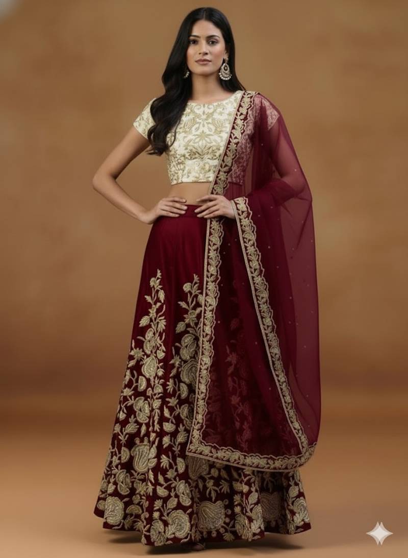 • Style : Circular Lehenga • Fabric : Velvet • Work : Embroidered • Color : Maroon Dupatta Details