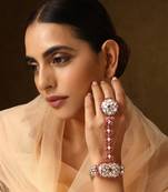 • Product Id : 4361423 • Package Details : 1 Hathphool • Type : Haath Phool Hath Panja • Jewellery Work : Polki • Color : Red • Plating : Brass • Base Material : Brass Payments [+]