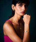 Features a 18K Gold-plated chameli bracelet, choker, stud earrings.