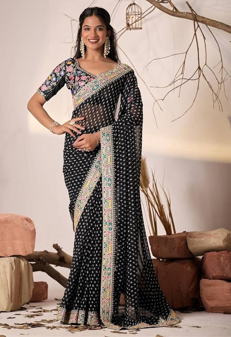 • Border : Embroidered Border • Color : Black • Fabric Of : Faux Georgette • Color : Black Blouse Details