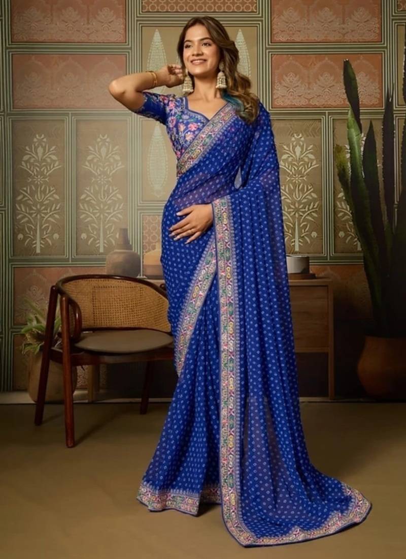 • Saree : Color- Blue / Fabric- Faux Georgette • Blouse : Color- Blue / Fabric- Faux Georgette Saree Details