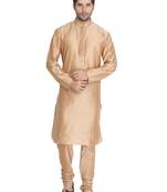Men's Gold Cotton Blend Kurta Pyjama Set