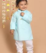 Infant Boys Aqua Blue Cotton Blend Kurta
