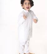 Fabric: Pure Cotton | Contents: A Classic Ensemble Of Lukhnowi Chikankari Kurta, Certainly A must Have. We manufacture kids wear for boys 1-2 years, 2-3 years, 3-4 years, 4-5 years, 5-6 years, 6-7 years, 7-8 years, 8-9 years, 9-10 years, 10-11 years, 11-12 years, 12-13 years, 13-14 years, 14-15 years and kids wear for baby boys 0-6 months, 6-12 months, 12-18 months, 18-24 months. All our kurtas, Sherwani, Indowestern and Nehru Jackets have loosening over the body measurement. Measurements shown in images or the size chart section are garment measurements, so take adequate 5-6 inches loosening over the little champion's body measurement to get the right fit. Our kurtas are Medium length and Regular Fit. Our Kurta fitting is usually slightly relaxed compared to a Regular Shirt's fitting. Select your Kurta size based on your chest dimension. These kids ethnic wear for boys under boys clothing are also used as Pathani suit for boys stylish, jubba for boys, Panjabi for boys or khan dress for boys stylish. Most material used for kurta under 300 tensil count only. Wash Care Instructions: Dry Clean preferably or cold light wash. Disclaimer: We have made a consistent effort to make the colours and finishes similar to the image of the products you see on screen. However, the actual product and the images on the website can differ! Customer's discretion is advised. Get your little boy these kurta dhoti for boys and jacket for boys stylish stitched meticulously to fit all body type. This ethnic wear for kids boys fabric has been designed keeping in mind the latest trends in a casual fashion or occasional fashion. Engineering garments which fit all body types and style is our aim. These pyjama kurta for boys party wear or regular wear are made with superior quality very soft fabric and comfortable wear. These are multi utility sets, the Nehru Jackets for boys latest Modi Jackets for kids can be used separately as a Bandi or for a formal event, or a school cultural fancy dress program. These jackets are best safer alternatives to winter coats or blazers, as it covers the chest area of the child. These are perfect light weight easy to wear alternative to a servani or sherwani for kids boy. Our recommendation next time don't go for a kids sherwani for boy stylish latest design or indo-western for kids, try these! Paired it with a nice shirt on a jeans to flaunt a charming killer dapper boy! To complete the look adorn a mojari or jutti slippers for kids stylish, you may also try an authentic Kohlapuri chappal for boys, the fashionistas and millennial folks may experiment with a brogues or oxfords juta for boys stylish. Suitable for: Party, Weddings, Regular Wear, Celebrations, Occasions, Festivals, Lohri, Pongal, Makar Sakranti, Baisakhi, Saraswati Puja, Holi, Ugadi, Jamai Sasthi, Eid, Raksha Bandhan, Dussehra, Diwali, Navratri, Pooja, Christmas, Onam, Ganesh Chaturthi, Janmashtami and Gifts for Kids.