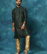 Fabric: Silk Blend | Contents: a All Over Embroidered Festive Kurta And Pant Style PyjamaAll Over Embroidered Festive Kurta And Pant Style PyjamaMedium length and Regular Fit. Our Kurta fitting is usually slightly relaxed compared to a Regular Shirt's fitting. Select your Kurta size based on your chest dimension. Note: if one has a heavier abdomen compared to chest then he should select one size bigger kurta. Our Churidar Pajamas have drawstrings and a separate pocket attached to it. The pyjama bottom mohri is usually kept narror to bring out the best possible churi look. Although popularly known as Kurta Pyjama but this ethnic wear for men can be suitably used as pathani suit for men stylish, jubba for men, panjabi for men or khan dress for men stylish. Most material used for kurta under 300 tensil count only. These are good alternative to a Indo western or a sherwani. Check out for kurta for mens new looks, kurta for mens wedding, punjabi kurta for men.All our kurtas have five inches loosening over the body measurement. So if your chest round measurement is 38 inches then you should go for a 38 (Medium) size Kurta which will have a garment ready chest measurement of 43 inches. We offer six sizes - Small = 36 (Chest - 41), Medium = 38 (Chest - 43), Large = 40 (Chest - 45), X- Large = 42 (Chest - 47), XX - Large = 44 (Chest - 49) and XXX - Large = 46 (Chest - 51). Suitable for: Party, Weddings, Regular Wear, Celebrations, Occasions, Festivals, Lohri, Pongal, Makar Sakranti, Baisakhi, Holi, Eid, Raksha Bandhan, Dussehra, Diwali, Navratri, Pooja, Christmas, Onam, Ganesh Chaturthi, Janmasthmi and Gifts for Mens.Wash Care Instructions: Dry Clean preferably or cold light wash.Disclaimer: We have made a consistent effort to make the colors and finishes similar to the image of the products you see on screen. However, the actual product and the images on the website can differ! Customer's discretion is advised.