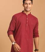 Fabric: Cotton | Contents: a Woven Stripe Short Kurta For MenWoven Stripe Short Kurta For MenMedium length and Regular Fit. Our Kurta fitting is usually slightly relaxed compared to a Regular Shirt's fitting. Select your Kurta size based on your chest dimension. Note: if one has a heavier abdomen compared to chest then he should select one size bigger kurta. Our Churidar Pajamas have drawstrings and a separate pocket attached to it. The pyjama bottom mohri is usually kept narror to bring out the best possible churi look. Although popularly known as Kurta Pyjama but this ethnic wear for men can be suitably used as pathani suit for men stylish, jubba for men, panjabi for men or khan dress for men stylish. Most material used for kurta under 300 tensil count only. These are good alternative to a Indo western or a sherwani. Check out for kurta for mens new looks, kurta for mens wedding, punjabi kurta for men.All our kurtas have five inches loosening over the body measurement. So if your chest round measurement is 38 inches then you should go for a 38 (Medium) size Kurta which will have a garment ready chest measurement of 43 inches. We offer six sizes - Small = 36 (Chest - 41), Medium = 38 (Chest - 43), Large = 40 (Chest - 45), X- Large = 42 (Chest - 47), XX - Large = 44 (Chest - 49) and XXX - Large = 46 (Chest - 51). Suitable for: Party, Weddings, Regular Wear, Celebrations, Occasions, Festivals, Lohri, Pongal, Makar Sakranti, Baisakhi, Holi, Eid, Raksha Bandhan, Dussehra, Diwali, Navratri, Pooja, Christmas, Onam, Ganesh Chaturthi, Janmasthmi and Gifts for Mens.Wash Care Instructions: Dry Clean preferably or cold light wash.Disclaimer: We have made a consistent effort to make the colors and finishes similar to the image of the products you see on screen. However, the actual product and the images on the website can differ! Customer's discretion is advised.