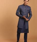 Navy Blue Cotton Sherwani And Pyjama Set Stitched
