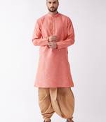 Men's Pink And Rose Gold Silk Blend Kurta And Dhoti Set