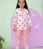Make bedtime extra comfy and cute with this Polka Dot Pink Co-ord Night Suit for girls! Crafted from 100% pure cotton, it is soft, breathable, and gentle on your child’s skin, keeping her relaxed and cozy through the night. The adorable pink polka dot design adds a playful charm, while the relaxed fit ensures maximum comfort for sound sleep. This set comes with a matching top (available in full-sleeve or half-sleeve) and pajama, making it perfect not just for nightwear, but also for loungewear or pajama parties. Easy to care for with both machine and hand wash, this nightwear set is the perfect blend of style, comfort, and cuteness to let your little one sleep happily in style. 💖🌙