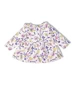 Lavender Bloom Frock . Elegant and dreamy, this frock comes in a beautiful lavender base with pastel floral prints in pink, yellow, and navy blue. The round neck is finished with a soft frill that adds a delicate detailing to the neckline. Crafted in breathable cotton with full sleeves, this frock is perfect for light weather while ensuring your little one feels comfy and free. The pretty print and soft shades make it perfect for brunches, birthdays, or even everyday wear with a touch of style.