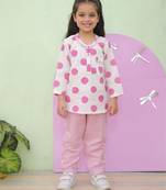 Pink Cotton Polka Dot Night Suit For Girls