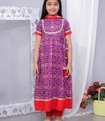 • Product Id : 4631004 • Package Details : 1 Kurta / 1 Pant / 1 Dupatta • Type : Kids Kurtis • Work : Printed • Sleeve : Half Sleeve • Bottom Color : Purple • Top Color : Purple • Top Fabric : Cotton • Stitching : Stitched • Gender : Girl Payments [+]
