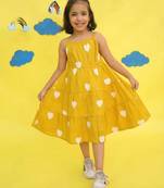 Add a splash of sunshine to your little one’s wardrobe with our Mustard Heartbeat Cotton Frock ☀️. Made from soft, breathable cotton, this frock offers all-day comfort and effortless style. The beautiful mustard yellow shade is perfectly complemented with cute white heart prints ❤️, making it a delightful choice for playdates, picnics, and festive occasions. The adjustable shoulder straps ensure a perfect fit, while the tiered, flowy design adds extra twirl and fun ✨. Lightweight and airy, it’s perfect for warm summer days. Let her shine bright and spread happiness in every step she takes!
