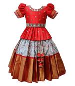 • Product Id : 4111317 • Package Details : 1 Lehenga :1 Choli • Type : Pattu Pavadai Set • Occasion : Festive • Work : Embroidered • Type : Zari Work • Look : Traditional • Sleeve : Short Sleeve • Neck Style : Round Neck • Bottom Fabric : Jacquard • Bottom Color : Multicolor • Top Color : Red • Top Fabric : Dupion Silk • Stitching : Stitched • Gender : Girl Payments [+]