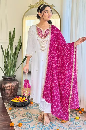 White Dori Embroidery Kurtis